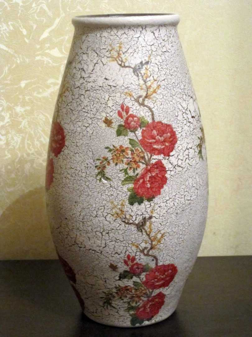 Для работы можно взять старую вазу, желательно белого цвета или однотонную. Такую вазу уже не нужно грунтовать. Если ваза цветная, а вы хотите белый тон, тогда нужно загрунтовать.
