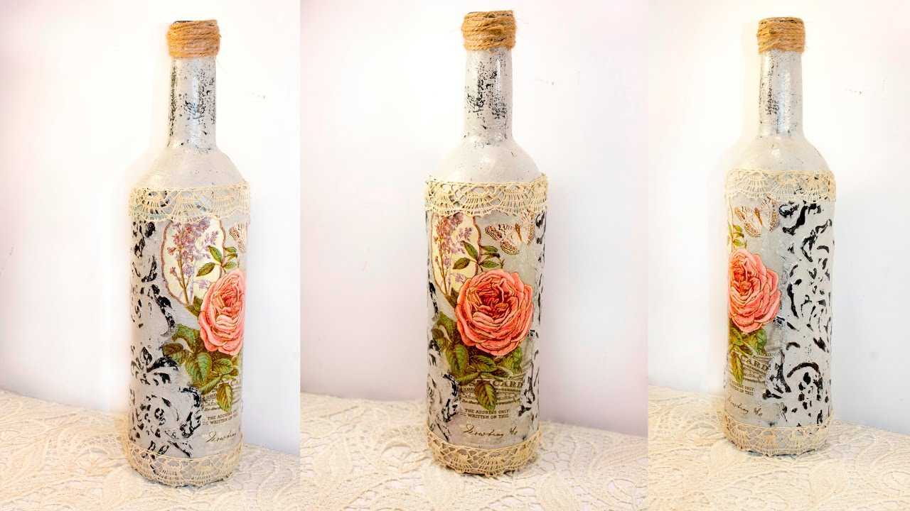 Декупаж бутылок: лучшие идеи простые методы и современные стили (110 фото)