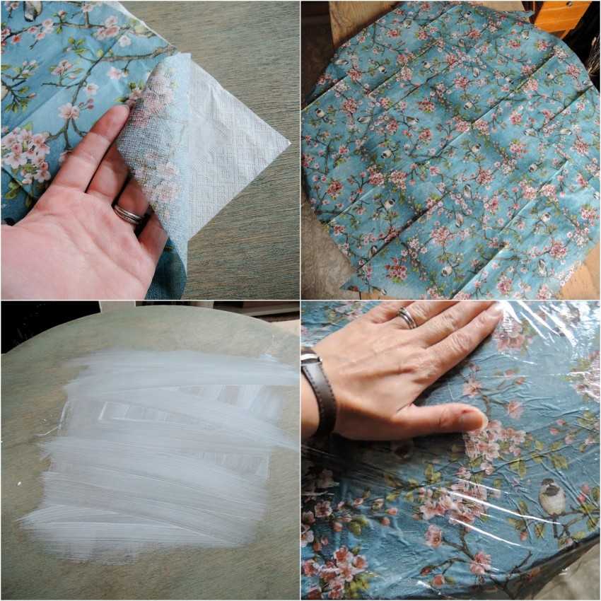 - Можно положить салфетку на поверхность, после чего начать промазывать клеем. Подробнее об этом способе – на видео.