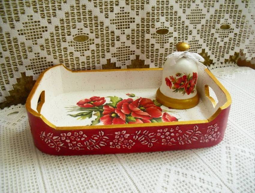 Как видите, перечень солидный. Не подходят для декупажа только очень пористые основания с большим количеством неровностей. А так декорировать можно все: от посуды любого вида до мебели и дверей (причем можно как саму поверхность дверей, так и стеклянные вставки).