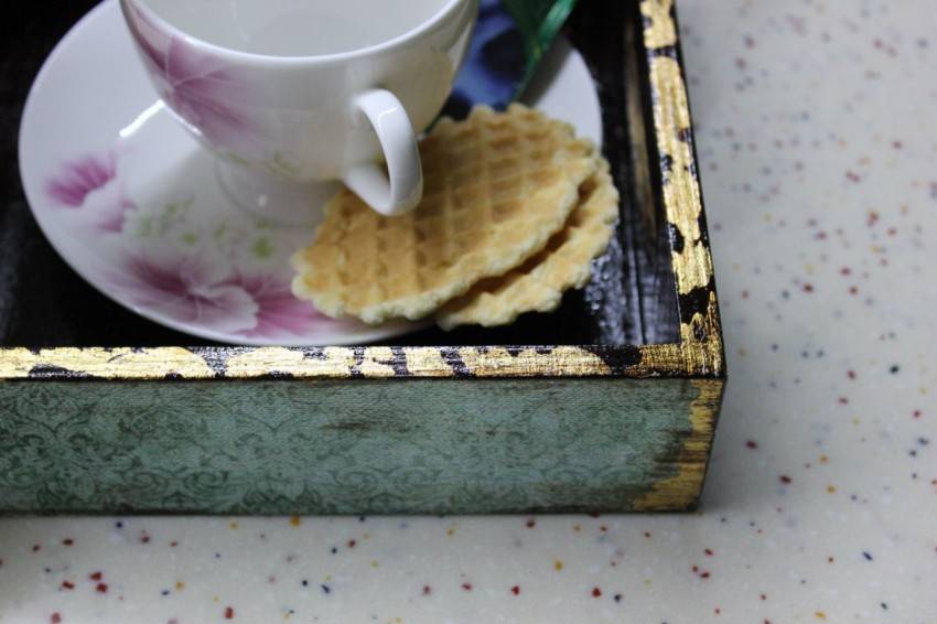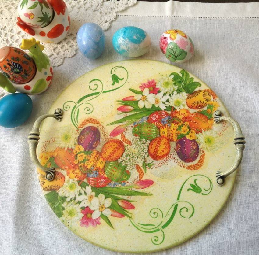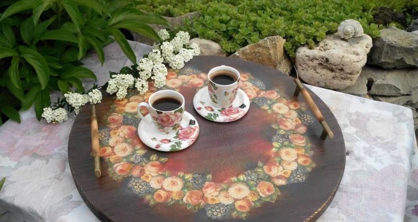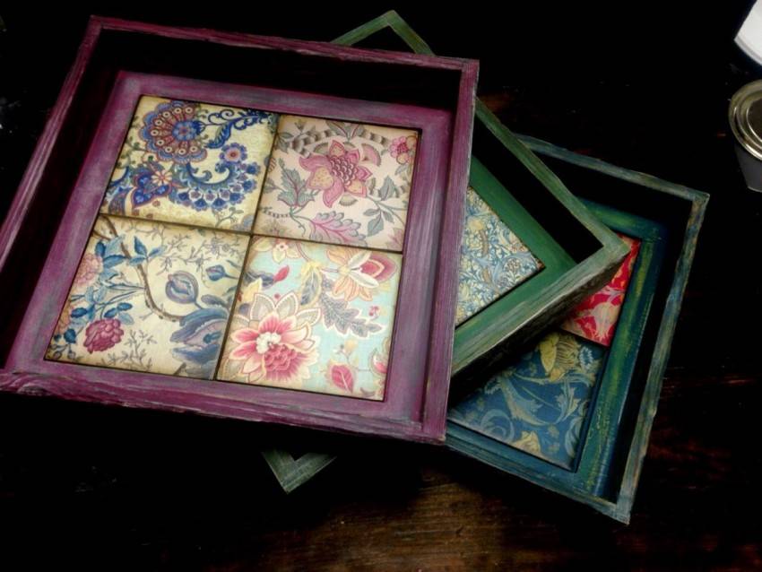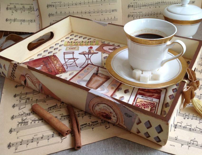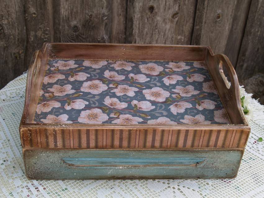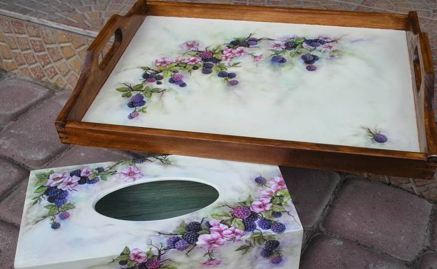 Эта техника используется для создания необычных предметов декора. Готовые изделия идеально дополнят интерьер в стиле винтаж, кантри или классика. Как правило, поверхность имеет неоднородную структуру. Рисунок позволяет придать изделию элемент старины.