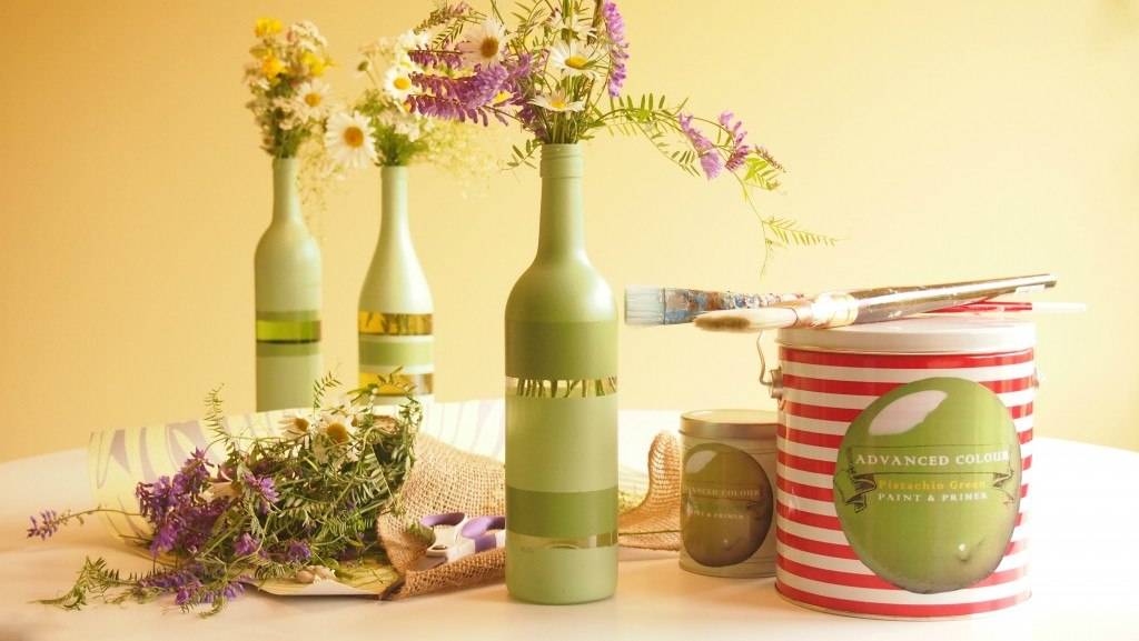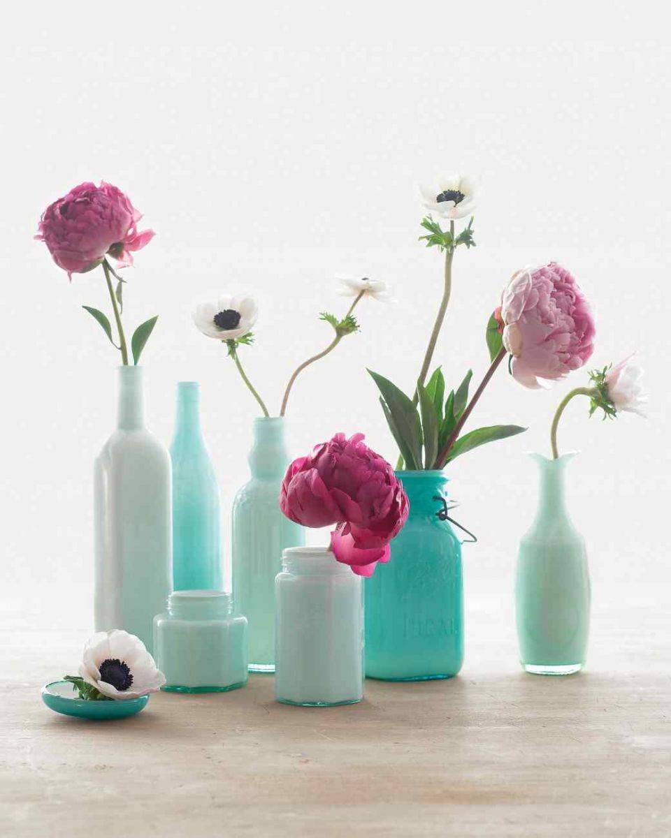 Использование красок может кардинально преобразить незамысловатые на первый взгляд стеклянные баночки и превратить их в изящную и красивую вазочку для цветов.