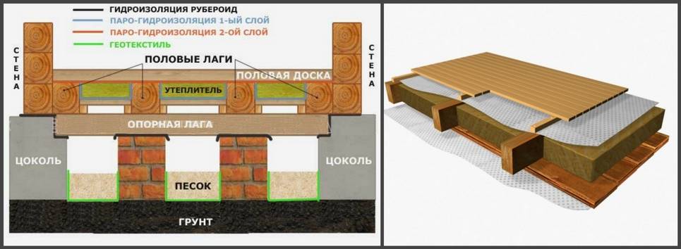 Кроме того, для хорошего пола важно наличие всех слоев конструкции, включающей лаги, черновой настил, гидро- и теплоизоляцию, чистовое покрытие