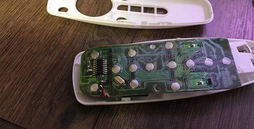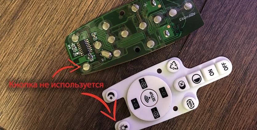 1. Разбираем пульт от лампы и находим на нем неиспользуемую или самую бесполезную кнопку.