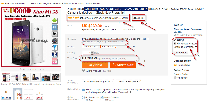 Хорошим признаком считается большое число покупок. Здесь следует быть осторожным, мошенники научились накручивать этот показатель. Нужно сравнить название продукта и название страницы. Если они совпадают, то представлено реальное количество совершенных покупок. Если же названия отличаются, то налицо попытка накрутки, когда на странице более популярного товара размещают другой.