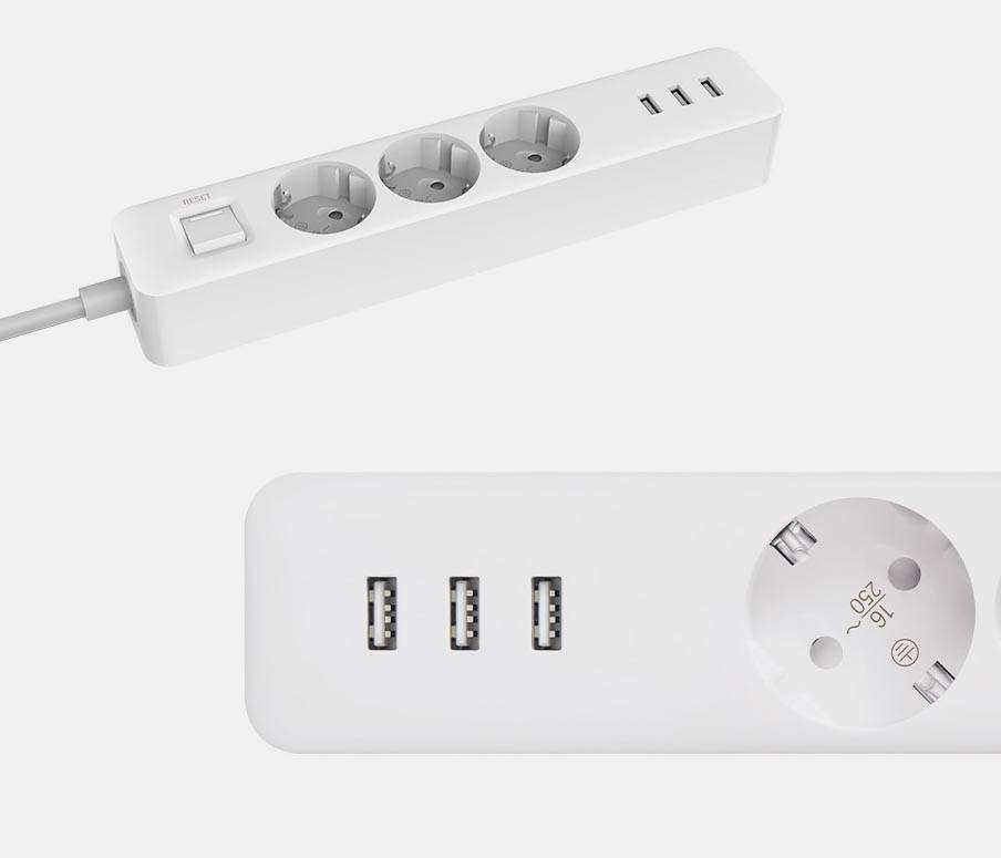 Сетевой фильтр Xiaomi с европейскими розетками + 3 USB – 1137 руб.