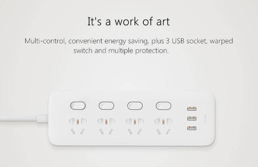 Первый умный сетевой фильтр от Xiaomi. Начинка занимает много места, а разработчики не захотели сильно увеличивать размеры гаджета. В итоге устройство не получило USB-разъемов для зарядки.