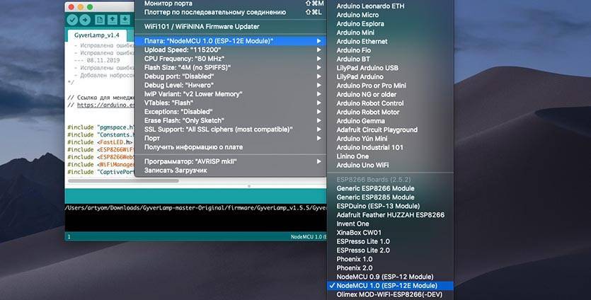 На сайте проекта (в очередной раз говорим “Спасибо” Алексу Гайверу) есть несколько вариантов прошивки для будущей лампы: