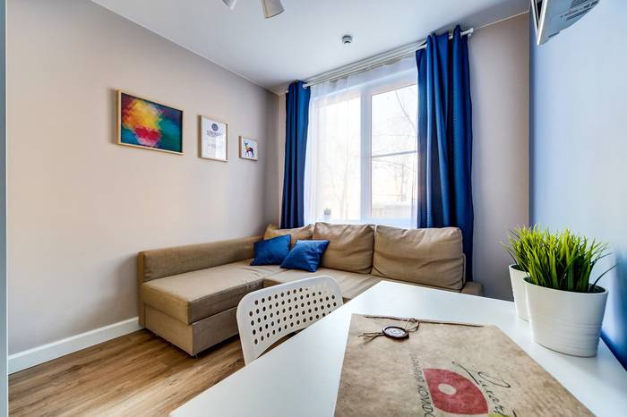 От обоев я решил отказаться. Стены были в неплохом состоянии, так что равнять их не пришлось – просто подготовил их под покраску. Мы решили выбрать приятные нежные тона. В каждой комнате сочетание нескольких цветов – одна стена окрашена в фиолетовый оттенок, другая – в персиковый и т.д. На фото это хорошо видно. Это была идея жены, и я поначалу сомневался, но в конце понял, что смотрится это супер. Потолки во всех трех комнатах побеленные, с натяжными тут решил не «заморачиваться». С деталями оформления уже разбиралась жена – подбирала шторы, картины, мебель, чтобы красиво смотрелось. В этом я уже не особо спец, главное, что свою часть выполнил и очень хорошо.