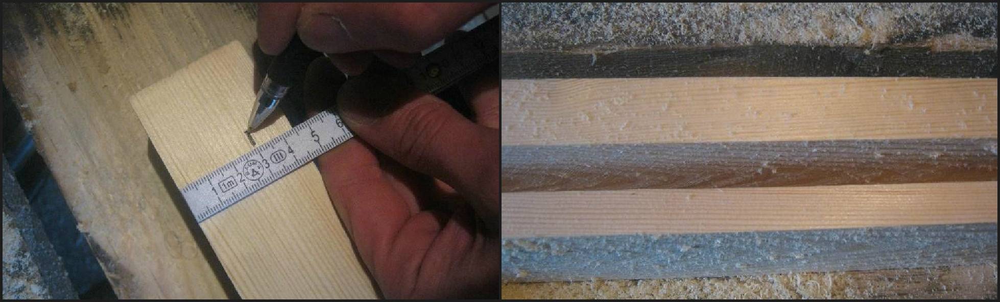 Сначала проводится обработка брусков. Необходимо качественно зачистить их наждачной бумагой. Следующий шаг — нанесение с помощью рейсмуса отметок на 1 и 3 стороны бруска. Четвертую сторону выравнивают, процессом строгания. Основное условие при этом — добиться прямых углов у сторон бруса.