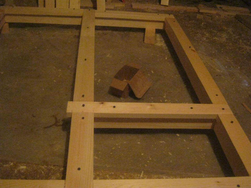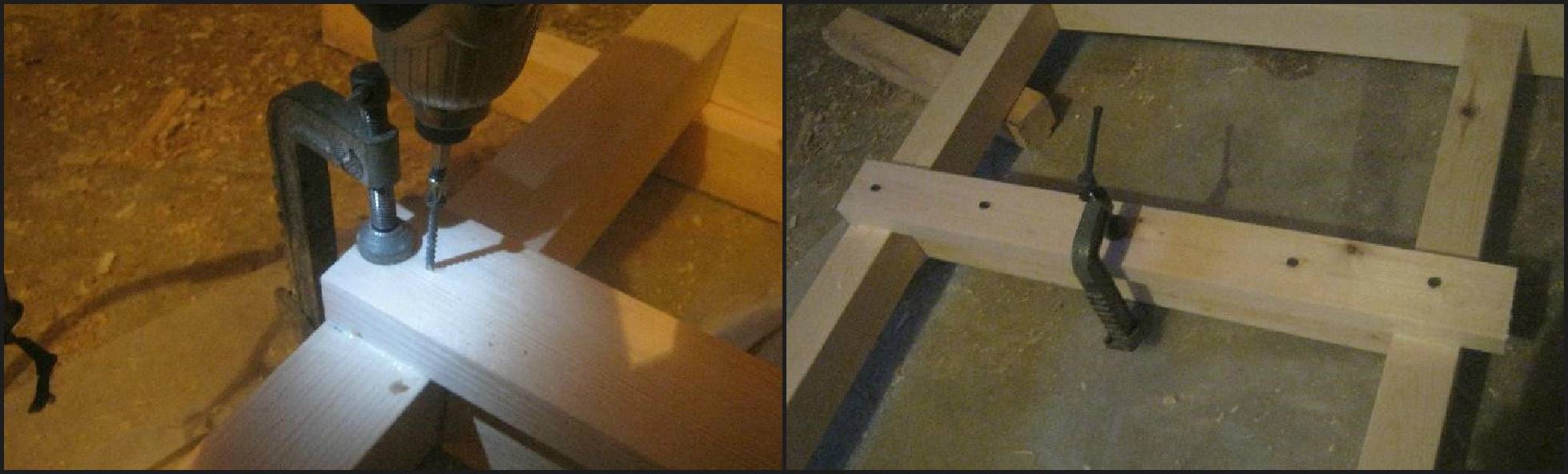 - Далее места стыков деталей промазываются столярным клеем и собираются. Дополнительно рама укрепляется металлическими уголками, которые следует расположить на всех углах с двух сторон конструкции.