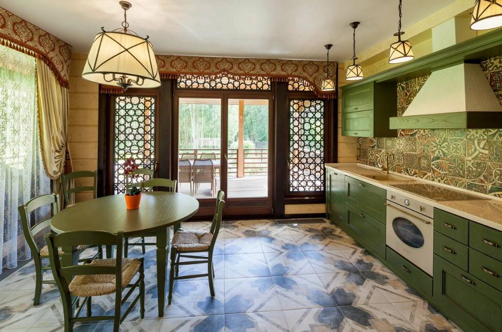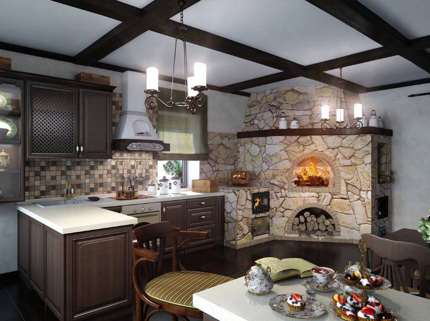 Помещение, отведенное под кухню всегда теплое из-за постоянной работы печи. Поэтому кухню можно спланировать со стороны севера или восточной части строения.
