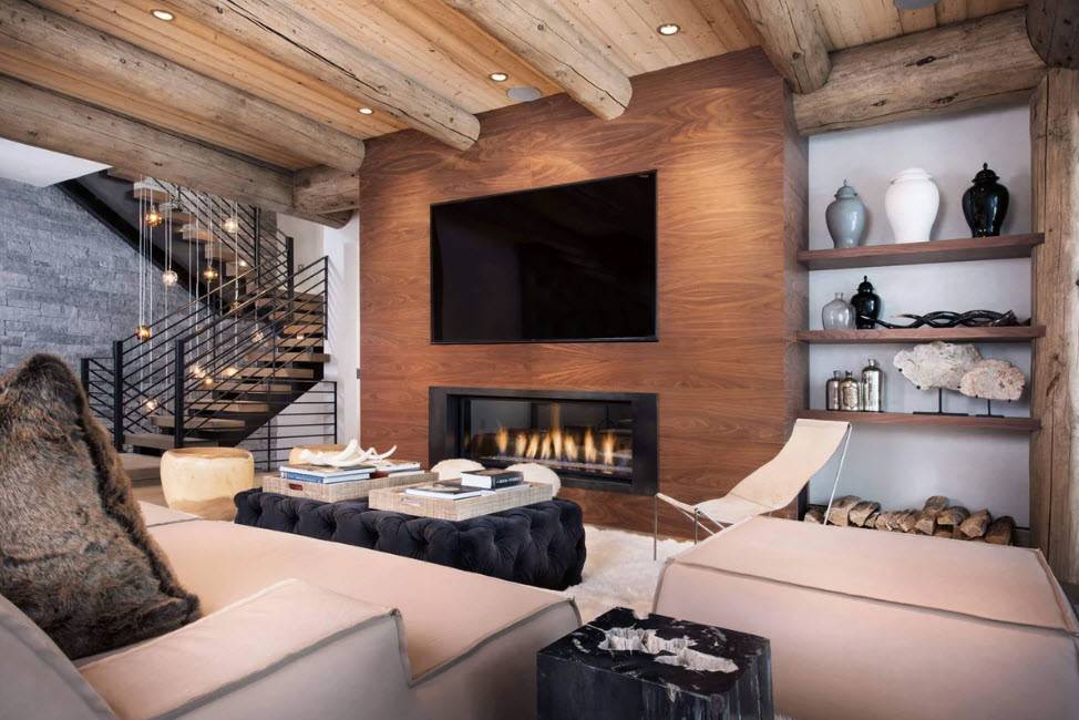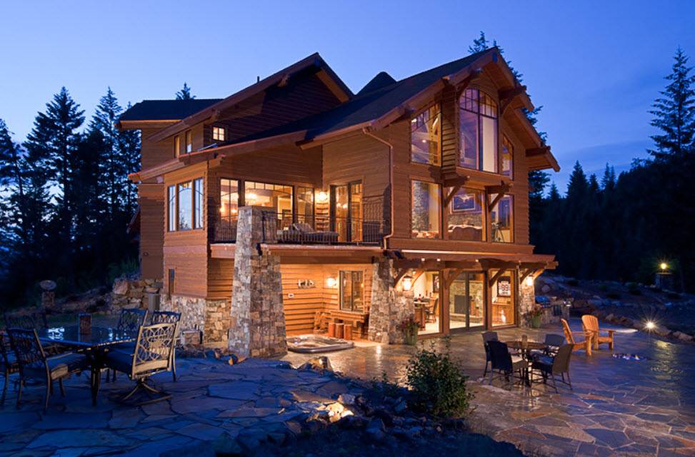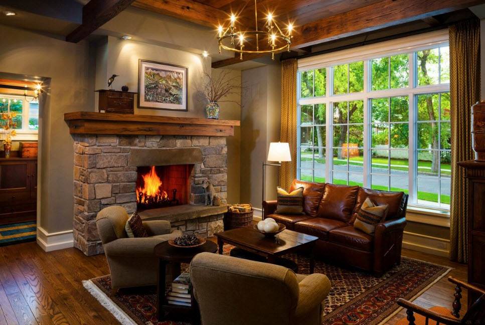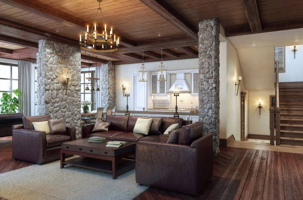 В качестве интерьера домов лучше всего подойдет деревянная мебель и столы, а также двери из дерева. Тогда жилище будет иметь целостный и уютный вид. Единственный недостаток деревянной мебели — она массивнее, чем мебель из ламинированной ДСП, зато деревянные изделия долговечнее и прочнее, чем ДСП, и подлежат реставрации.