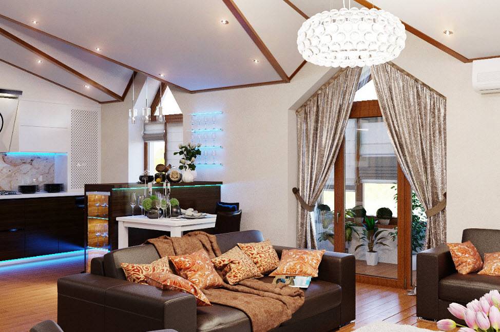 Обустройство гостиной на чердаке дома в мансардеИсточник hqarch.ru