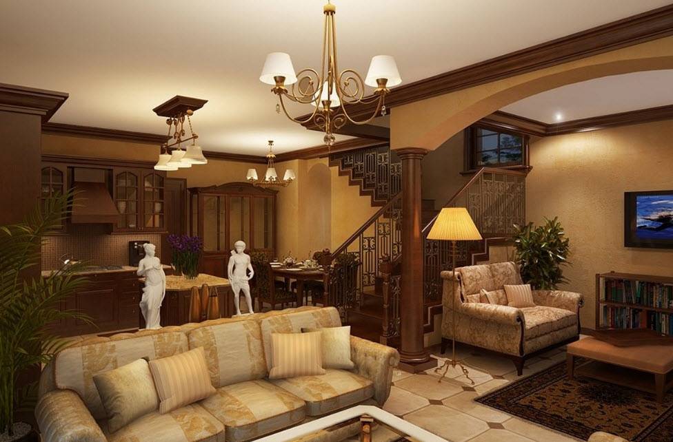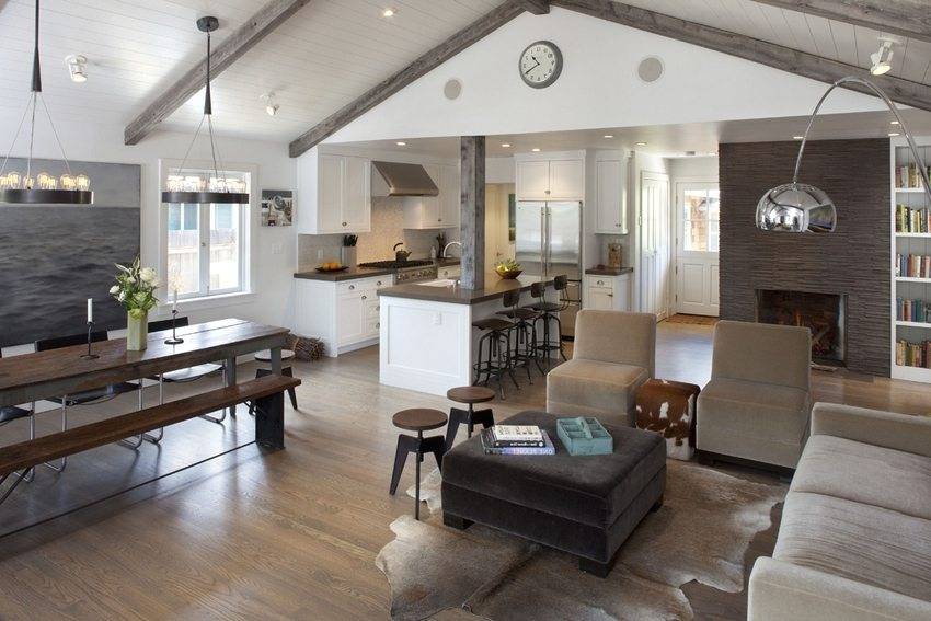 Если вас не привлекает дом с дополнительными уровнями, планировать комнаты следует с учетом эффективного использования площади. В доме необходимо обеспечить помещения для всех членов семьи, а кухню и столовую совместить. Также поступают с туалетом и ванной. Разграничить зоны поможет строительство невысоких перегородок, колонн.