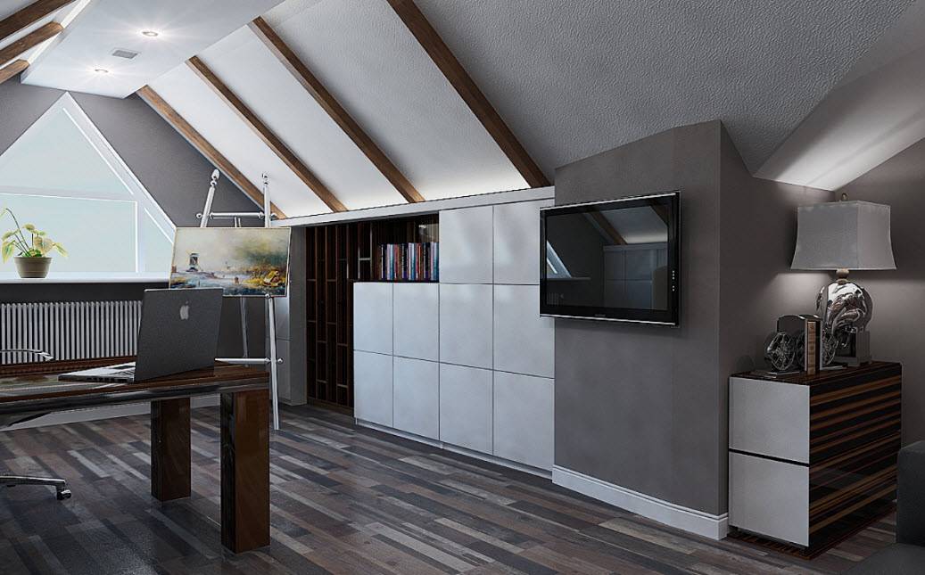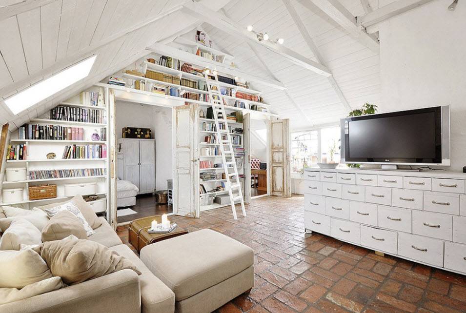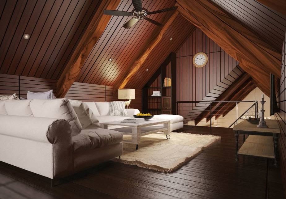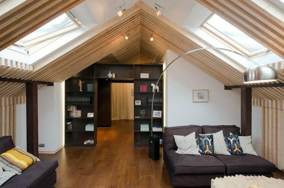 Помещение под крышей может быть организовано по-разному. Для этого лучше выбирать один дизайн интерьера и практиковать эффективное зонирование. Например, оформить мансарду можно в качестве личного рабочего кабинета, зимнего сада или домашней библиотеки:
