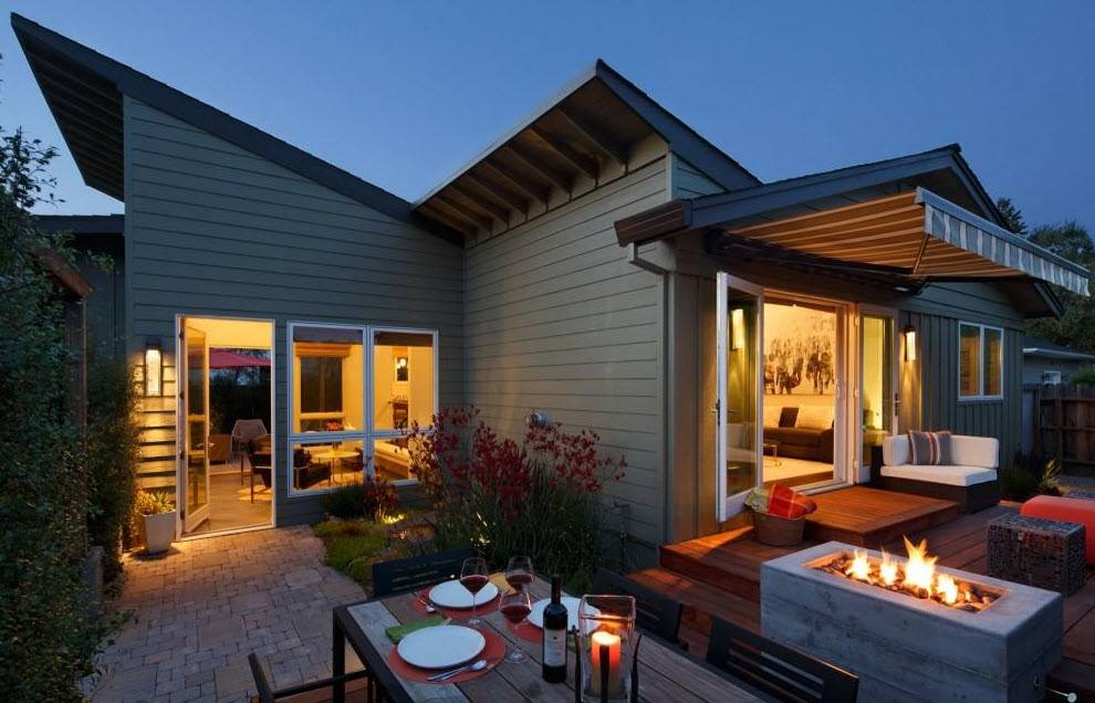 Если убрать внутренние перегородки, объединив кухню, столовую и гостиную, это визуально раздвинет внутреннее пространство небольшого по размерам дома