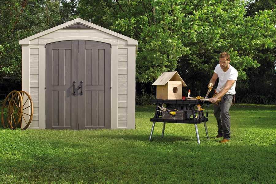 Хотя тематическая конструкция имеет небольшую площадь, на ее стройматериалы приходится тратить много средств. Что уж говорить про сам процесс. Поэтому целевой аудитории порой проще приобрести готовый сборный хозблок из следующих изделий: