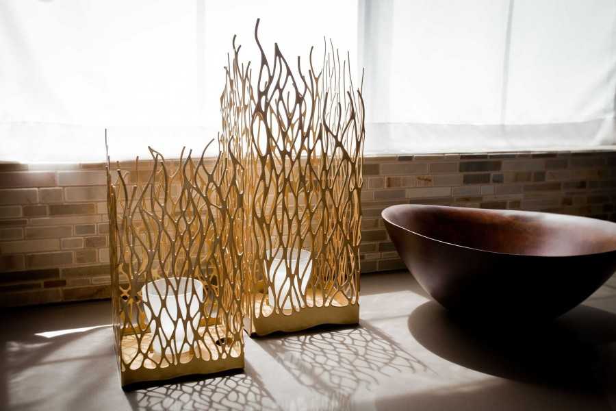 Из коряги получаются необычные настольные лампы своими руками замысловатой формы. Для этого корягу просушивают, покрывают лаком. Основание ровно спиливают или устанавливают на устойчивую опору. В середине высверливают отверстие для кабеля, на верхушке закрепляют цоколь.