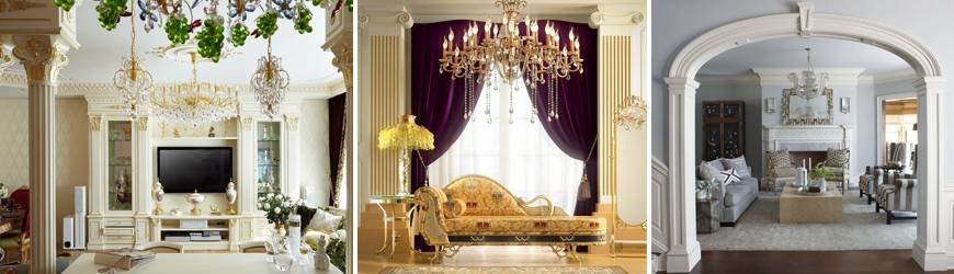 Классицизм в интерьере подчеркивает приверженность владельцев к аристократическому стилю жизни. Однако в отличие от барокко и ампира, в которых используются многоярусная лепнина, классицизм — это строгий и сдержанный стиль. Особенности классического дизайна интерьеров: