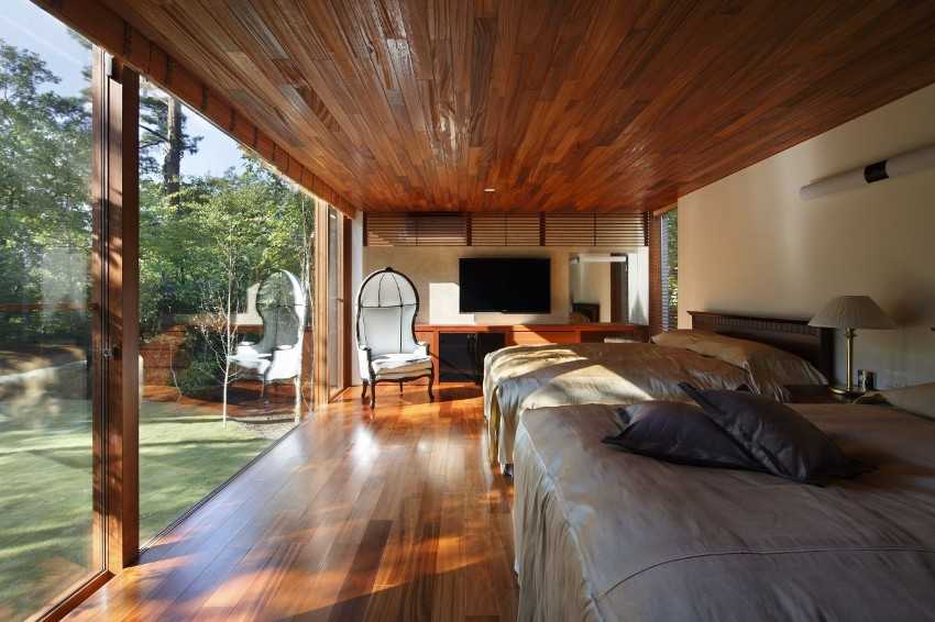 Обстановку в стиле рустик или экологичный дизайн дополняют отделкой потолка панелями из необработанного дерева. Вся структура дерева и мельчайшие неровности остаются на виду. Это изюминка дизайна и обстановки в целом.