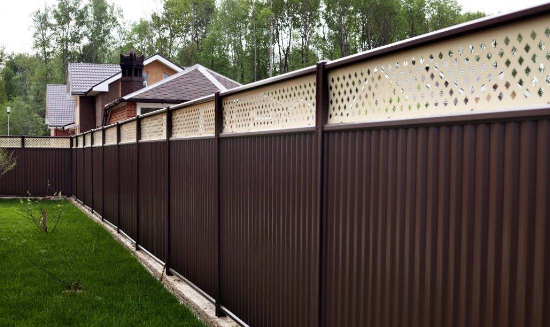 К недостаткам относится низко декоративный вид, особенно со стороны двора. Чтобы украсить такую ограду, часто прибегают к комбинировании с кирпичом