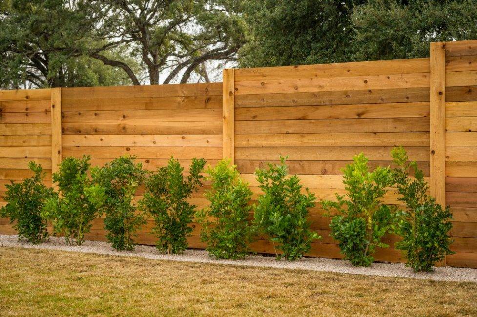 Горизонтальный вариант расположения досок в «жалюзийном» заборе