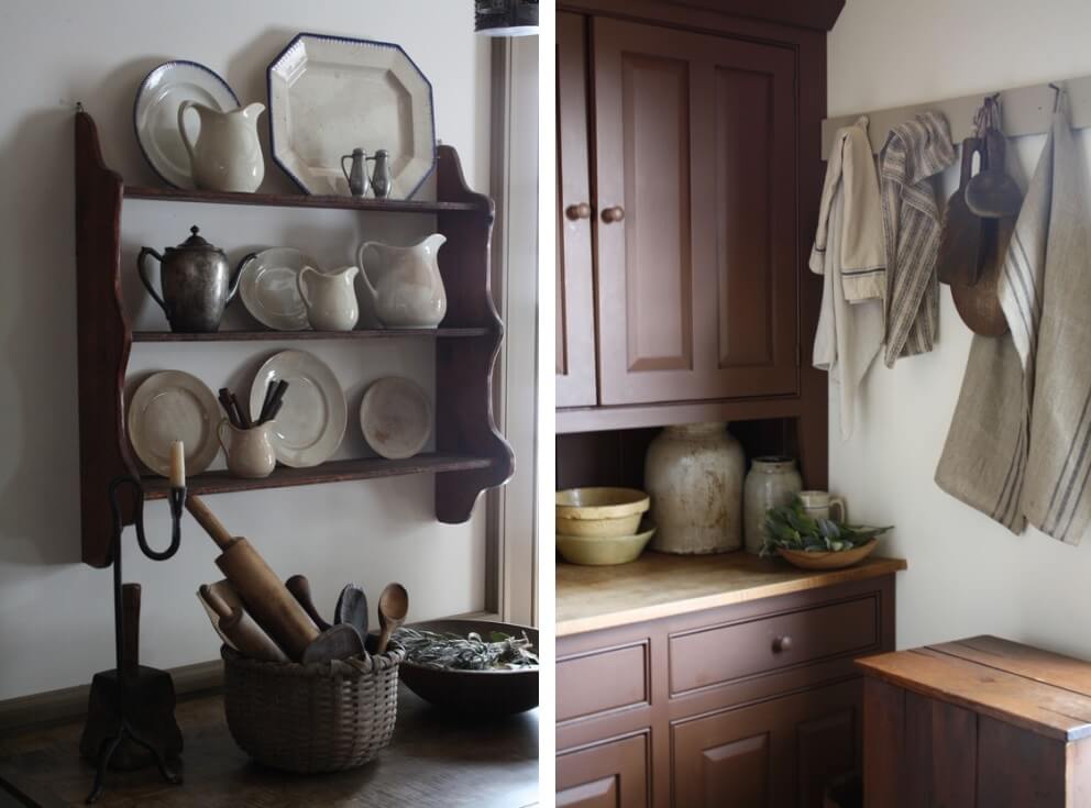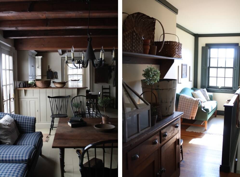 Любовь к натуральным материалам, которая прослеживается и в выборе декора. Украшательства в американском деревенском интерьере предельно просты. Обычно это то, что можно использовать в повседневном быте: глиняная и керамическая посуда, плетёные корзины, чугунные изделия. Могут присутствовать живые цветы и сухоцветы, венки из веток и ягод клюквы. В домах также можно встретить охотничьи трофеи – шкуры, рога, чучела. В этом стиле особенно ценится естественная красота материалов, поэтому современная техника обычно «прячется», а пластик по возможности вовсе отсутствует.