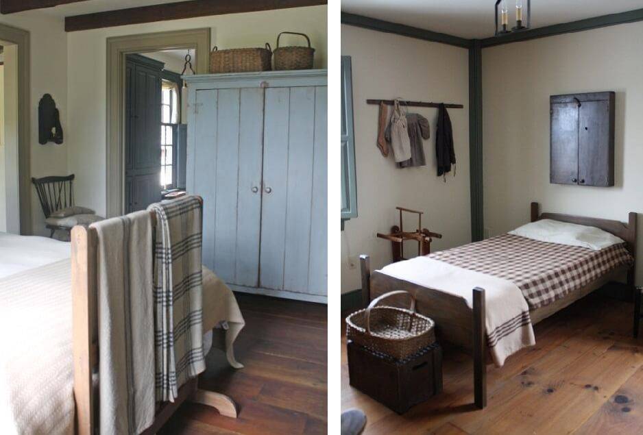 Много текстиля – полотенца, скатерти, вышивки, лоскутные или стёганые одеяла, домотканые коврики. Особенную прелесть деревенской комнате добавят вещи ручной работы. Шторы на окнах в американском сельском интерьере обычно простые, лёгкие, тонкие, светлые.