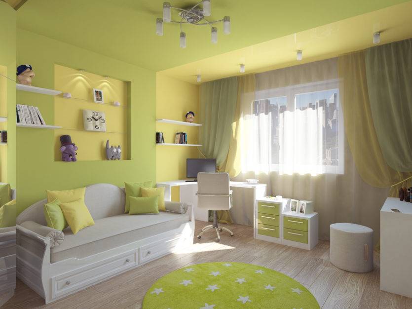 Использование большого количества ярких оттенков создаст серьезную нагрузку на психику ребенка, что недопустимо в подростковом периоде