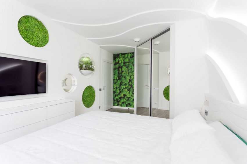 Приобретение мебели является заключительным этапом создания удобного и практичного помещения. Наилучшим вариантом станет установка кровати с тумбочками и небольшого шкафа. Кровать на подиуме поможет не просто создать уникальный дизайн, но и использовать появившееся место в качестве необычной системы хранения.