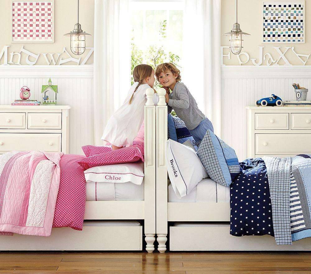 Нужно постараться пофантазировать над дизайном детской для разнополых детей, чтобы у каждого из них был собственный уголок.