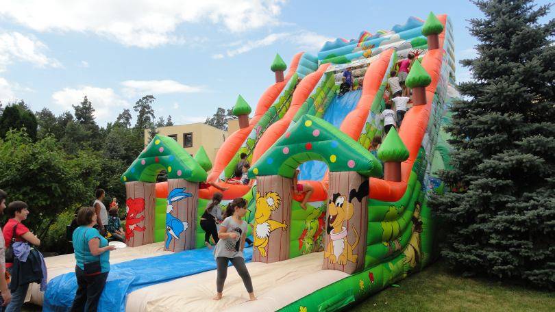 К прыганью, беганию, катанию добавляется еще море визга и брызг. Единственный недостаток – возможность проколоть горку на даче случайным сучком.