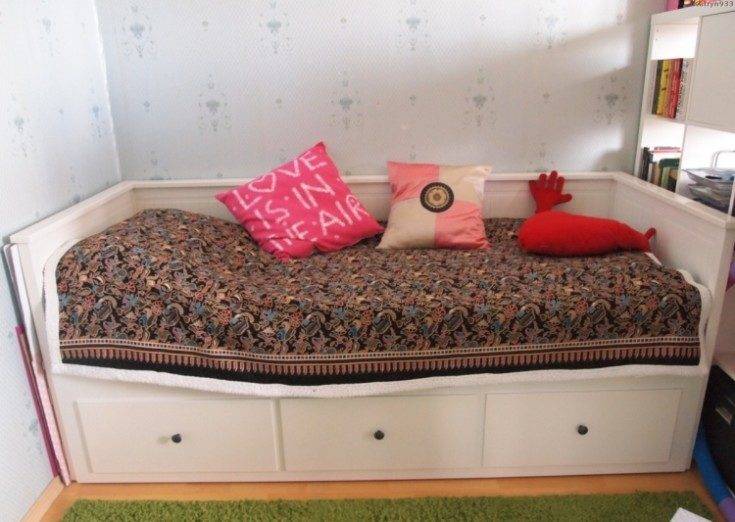 Подростку подойдет как односпальная, так и двуспальная кровать. Интересный вариант – кушетка. Достоинство такой мебели – выдвижные ящики. Хранить там подросток может все что угодно. А если пришли гости, кушетка становится диванчиком для посиделок.