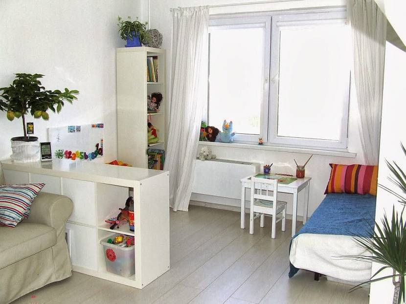Для детских спален, которые имеют небольшую площадь, можно с умом организовать каждую свободную точку пространства. Поставьте устойчивый шкафчик с игрушками в угол. Он может быть прямоугольным или угловым. Часто такие гарнитуры выполняются из пластика. Но могут применяться и специальные деревянные сундучки или МДФ-модели для хранения детских принадлежностей.