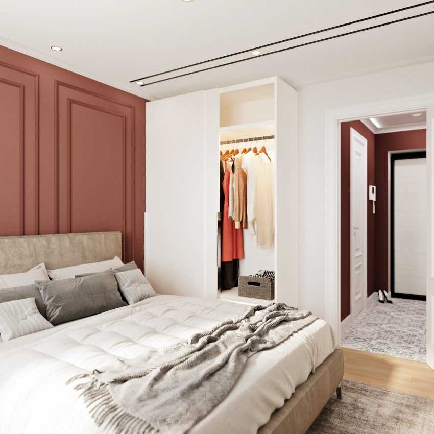 - Далее делим спальню на основные зоны: кровать, прикроватная зона, зона хранения.
