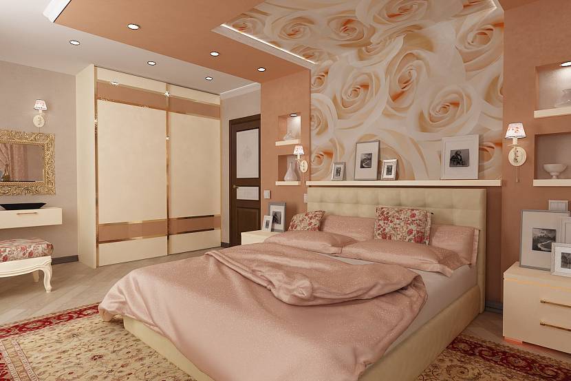 Нежная и просторная спальняИсточник sakhexpo.ru