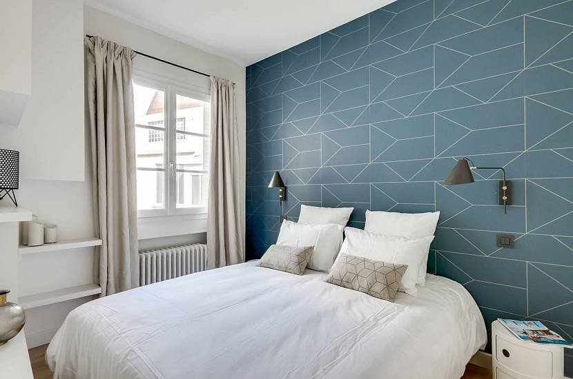 Синяя спальня – оказывает умиротворяющее воздействие на психику человека, как и приглушенный зеленый цвет. Чтобы помещение не напоминало больничную палату, синий должен быть приближенным к голубому оттенку и сочетаться с большим количеством белого цвета. Текстиль может вторить отделке стен или потолка – быть изготовленным из тканей цвета морской волны.