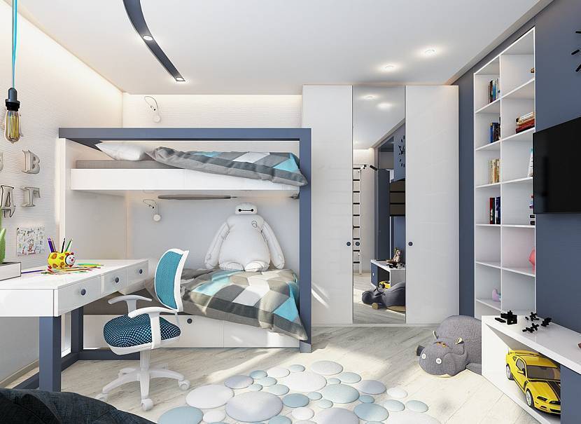 Современная детская для мальчиков с двухъярусной мебельюИсточник vash-vybor.info