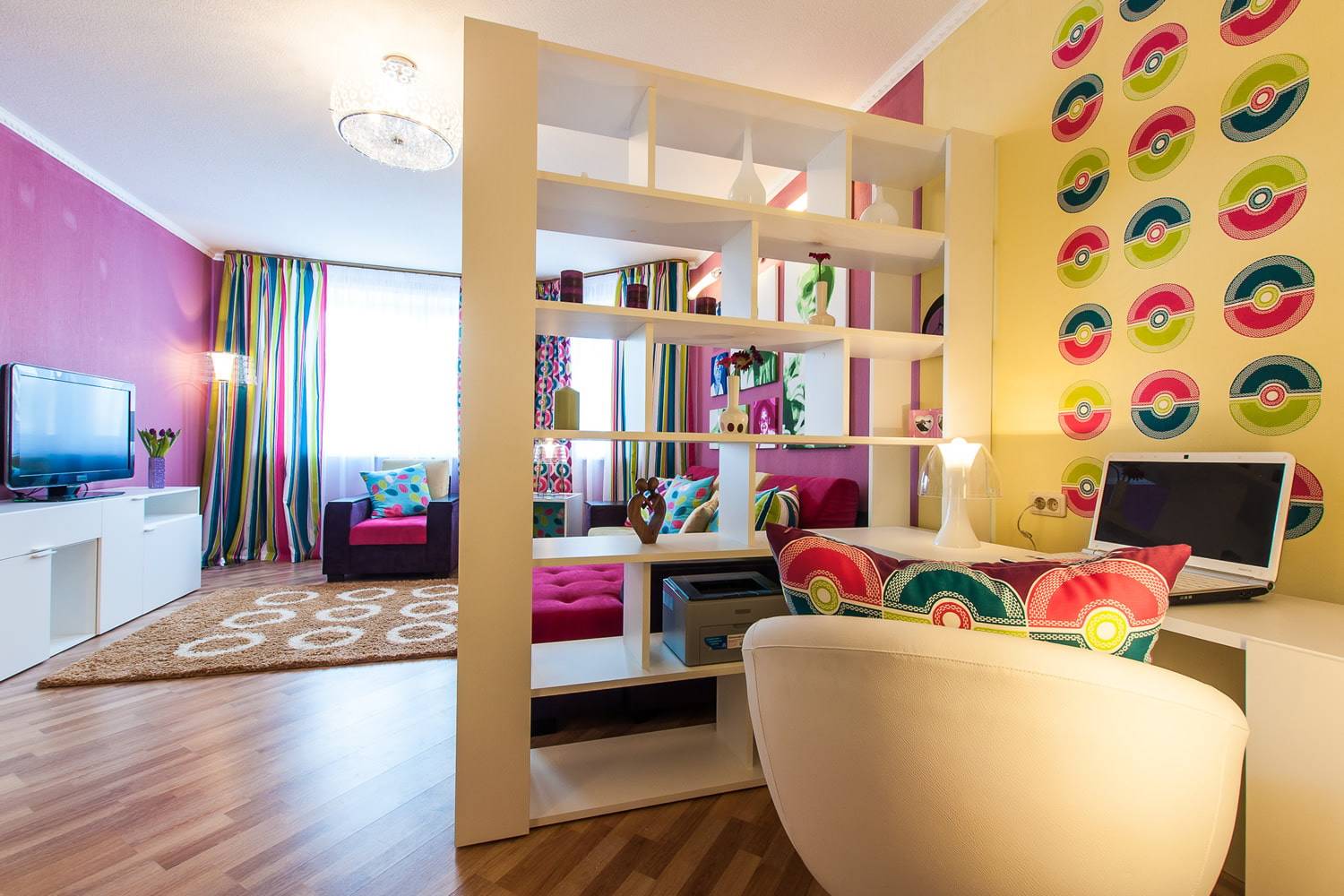 Для разделения функциональных зон используются перегородки, занавески, ширмы, раздвижные и откатные двери. Визуальными дизайнерскими приёмами могут стать отделка разными цветами, определённая расстановка мебели.