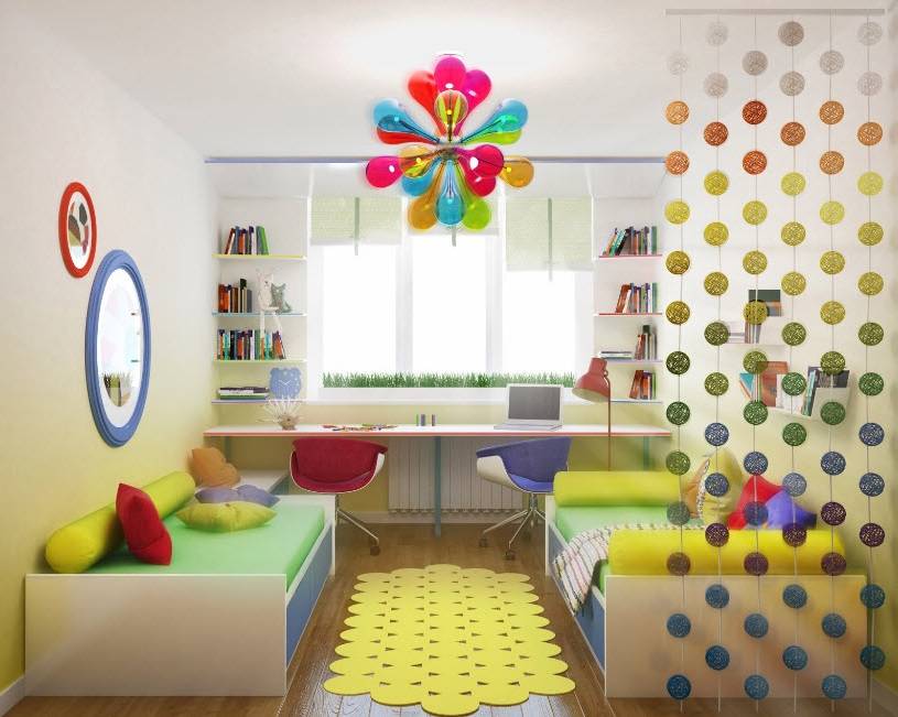 Разделите комнату на зоны в интерьере детской комнаты для разнополых детей