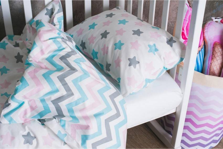 - Матрас. Его рекомендуется приобрести в специализированном магазине, так как покупные модели выпускают с учетом рекомендаций, разработанных врачами ортопедами. Если кровать планируется использовать не один год, то лучше выбрать двухсторонние изделия с разной степенью жесткости. Для детей до трех лет требуется твердое, жесткое покрытие, что способствует фиксации спины, правильному развитию организма. Наполнитель должен быть шерстяной, не стоит брать модели, в состав которых входит вата и поролон. Обивка также должна быть изготовлена из натуральной ткани, иметь антисептическое покрытие.