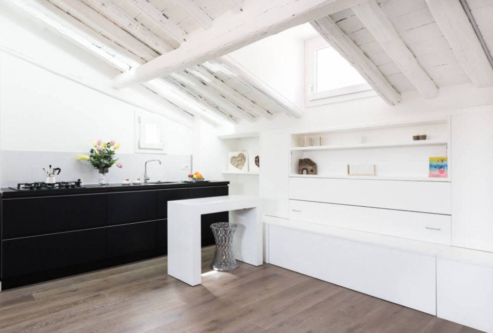 Кроме того, если вы, конечно, не скульптор-монументальщик и не балерина, вам для работы понадобится не слишком большое пространство, то есть мансарды, по идее, должно хватить, чтобы разместить там рабочий стол или музыкальный инструмент или гончарный круг, например.