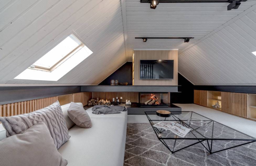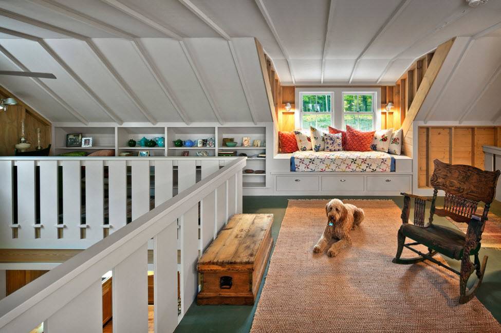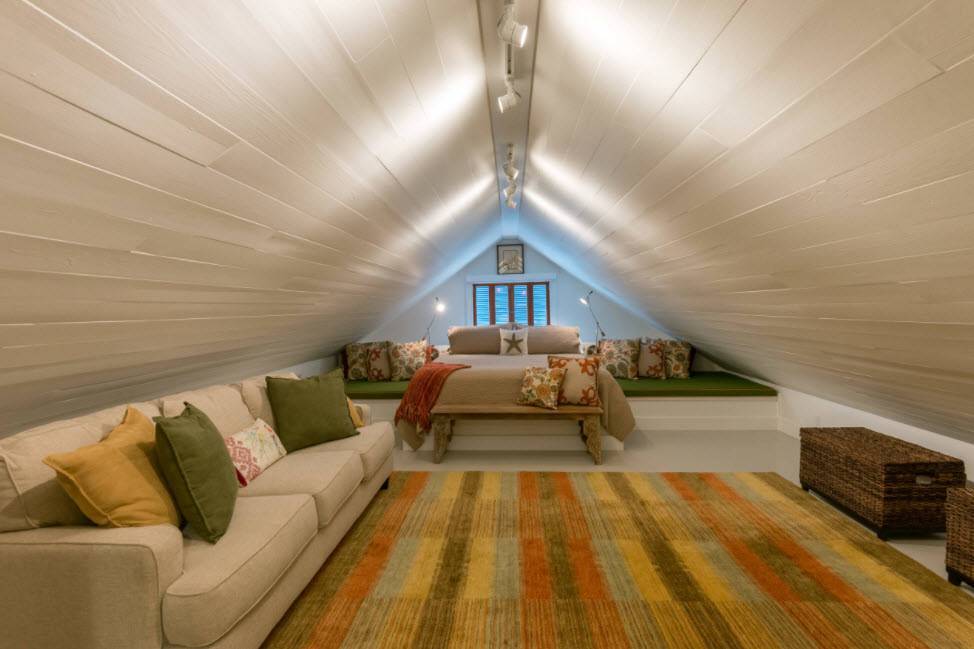 Изучить возможности украшения чердачного помещения можно, просматривая готовые проекты профессиональных дизайнеров. Они предпочитают создавать концептуальное оформление. И оно тоже может быть универсальным.