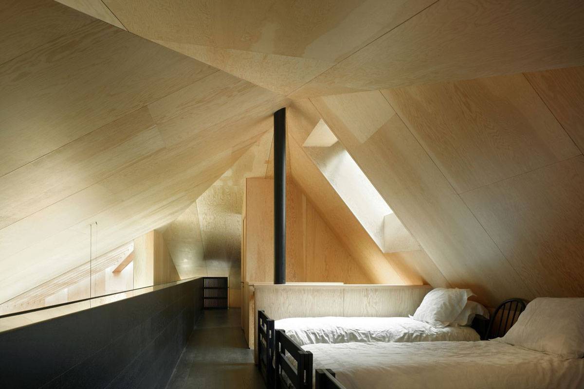 Интересное решение с вещевыми шкафами под скатной крышей помогает сэкономить место
