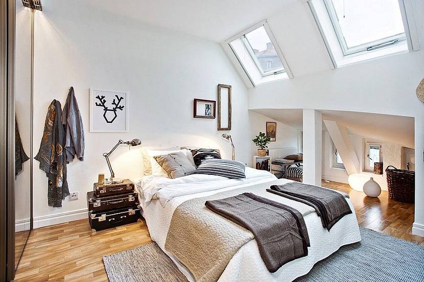 Белый цвет позволяет визуально увеличить пространство маленькой спальни на мансарде