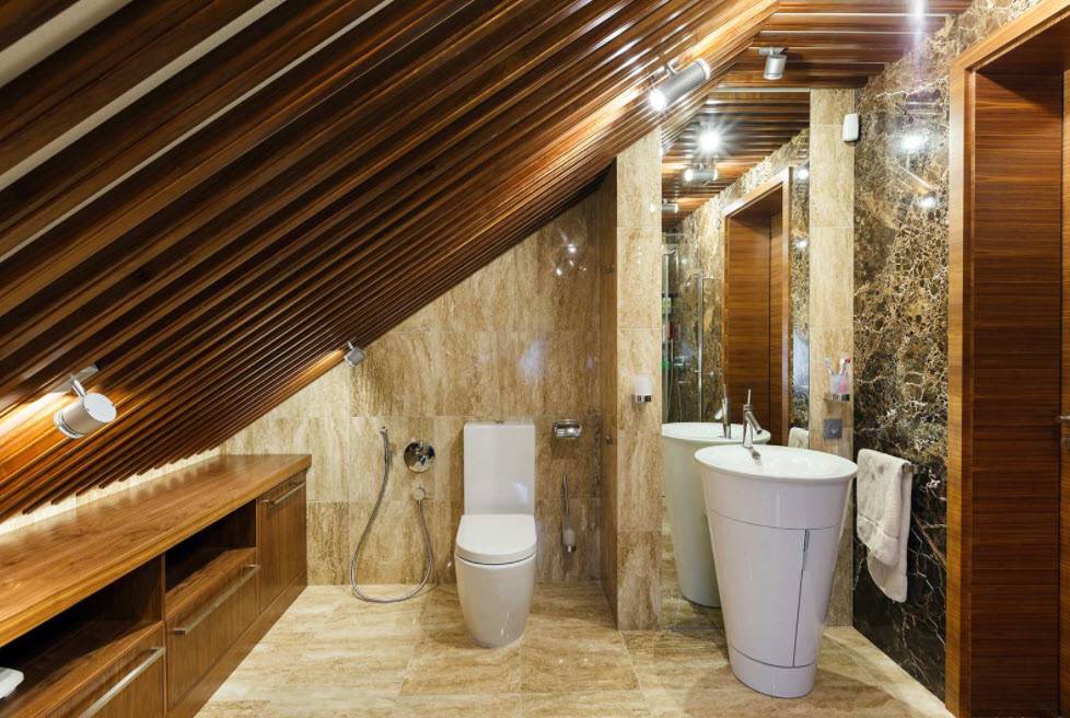 Масса преимуществ ванной комнаты на мансарде заставляет нас более внимательно присматриваться к подобным проектам.