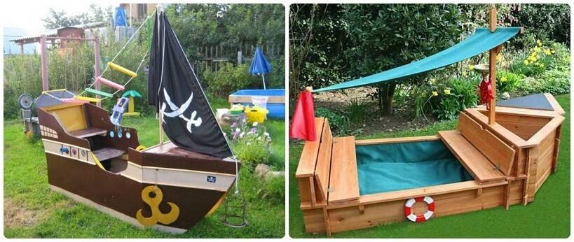 Можно, конечно, построить самую простую песочницу из четырех досок. Но любым родителям и деткам захочется, чтобы их творение было уникальным. Поэтому можно тематически оформить место для игр. Например, мальчишкам сделать песочницу в виде машинки или корабля