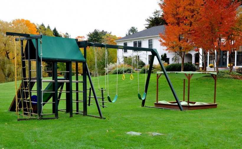 Решить придется непростую задачу. Во-первых, желательно чтобы детская площадка просматривалась из дома, причем из помещения, в котором кто-то находится большую часть времени. Идеально, если площадка просматривается из нескольких комнат или точек. Во-вторых, располагаться она должна подальше от хозпостроек с «ароматами», если такие есть. В-третьих, желательно учесть плодородность почвы: под игровой комплекс можно выделить неплодородный участок или со сложной геологией: особо закапываться в землю нет нужды, максимум — на 30-40 см закопать столбы качелей.