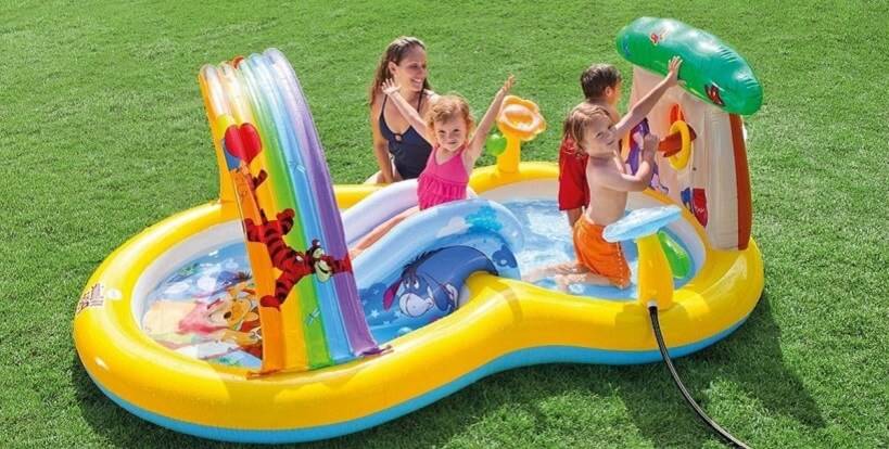 При выборе бассейна обратите внимание на игровые центры. Это мини аквапарки, состоящие из нескольких ёмкостей для воды, различных горок, надувных ярких фигурок